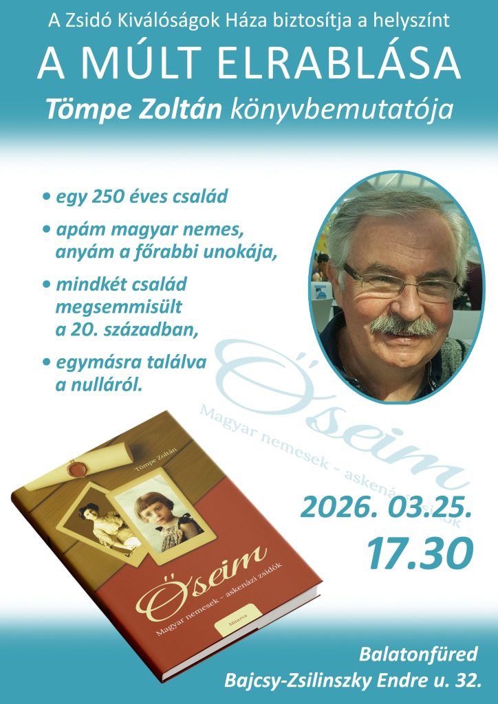 Ritkán adunk helyet könyvbemutatóknak. Azért tettünk kivételt Tömpe Zoltánnal, mert Balatonfüreden élő szerző és a családregénye egy keresztény magyar nemes és egy askenázi zsidó rabbileszármazott nem tipikus történetéről szól.