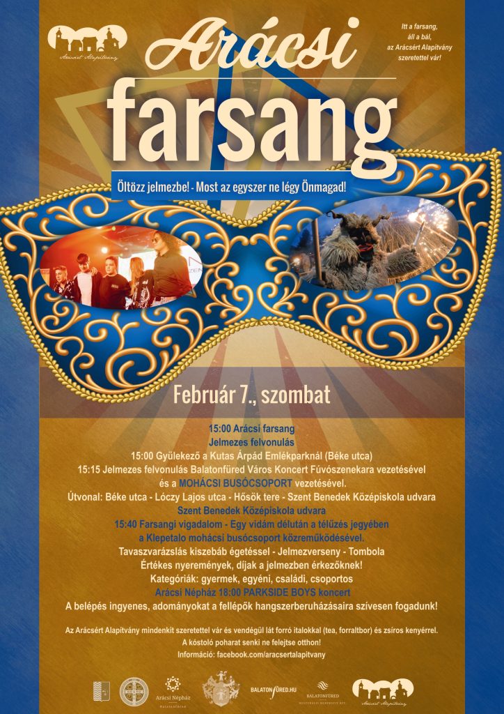 – 18:00 Parkside boys koncert az Arácsi Népházban, belépés ingyenes, de a zenekar hangszerberuházásaira adományok felajánlását szívesen fogadjuk.