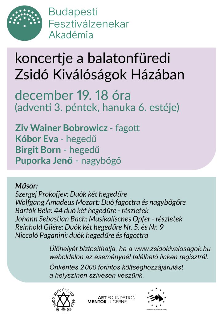 Budapest Fesztiválzenekar Akadémia koncertje a balatonfüredi Zsidó Kiválóságok Házában 2025.12.19. 18:00 Zsidó Kiválóságok Háza