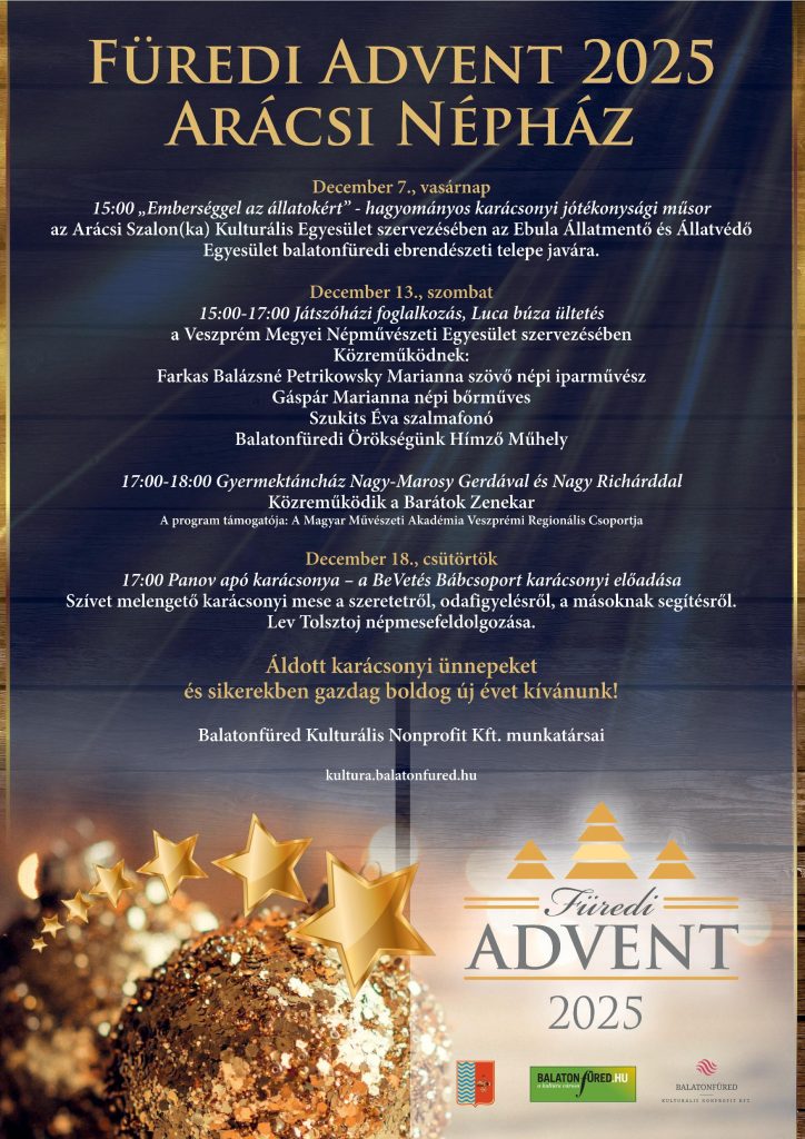 Füredi Advent 2025 – Arácsi Népház 2025.12.13. 15:00, 12.18. 17:00