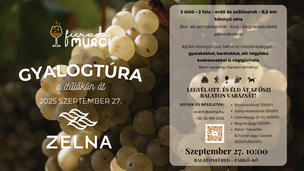 A Zelna Borászat idén ősszel először hívja életre a Gyalogtúra a dűlőkön át, amely egy különleges, élményalapú program a Balaton-felvidéken. A rendezvény célja, hogy a résztvevők egyszerre fedezzék fel a helyi dűlők szépségét, a szüret hangulatát és a közösségi együttlét örömét.
