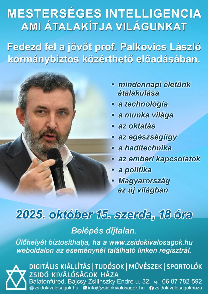 Mesterséges Intelligencia – Ami átalakítja világunkat 2025.10.15. Zsidó Kiválóságok Háza