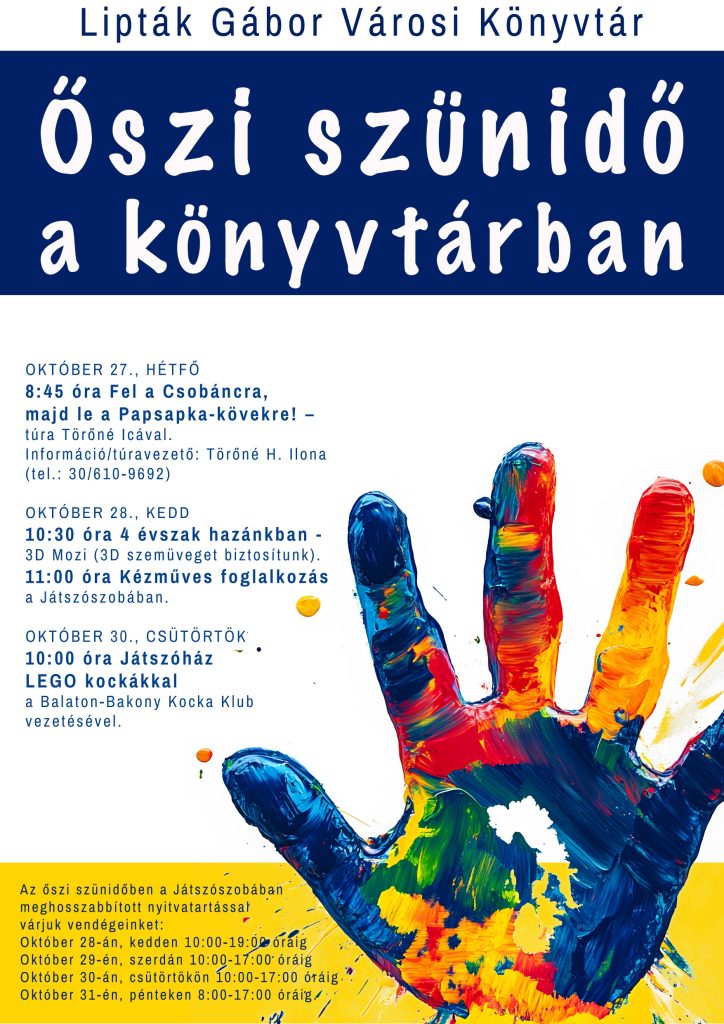 Hírek Őszi Szünidő a Könyvtárban 2025.10.27. Lipták Gábor Városi Könyvtár Őszi Szünidő a Könyvtárban 2025.10.27.