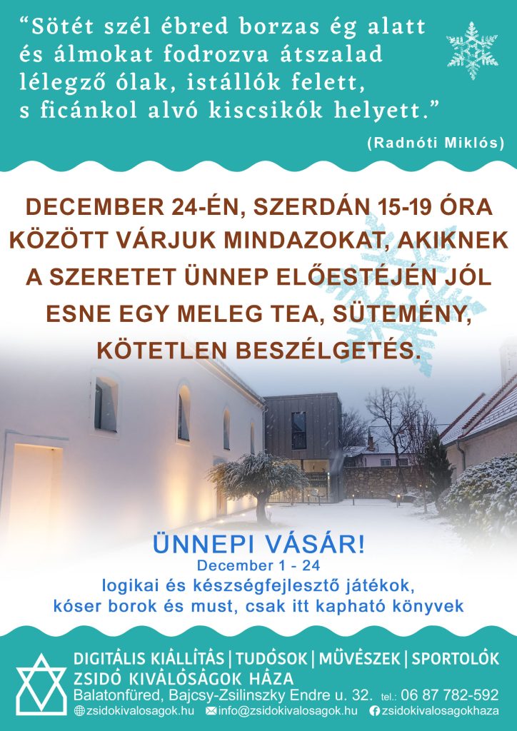 Tea, sütemény, kötetlen beszélgetés 2025.12.24. 15:00 Zsidó Kiválóságok Háza