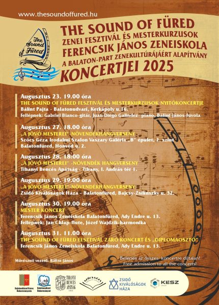 Idén 9. alkalommal rendezik meg a „The Sound of Füred” Zenei Fesztivál és Mesterkurzusok programjait a Ferencsik János Zeneiskola A Balaton-part Zenekultúrájáért Alapítványának közreműködésével .