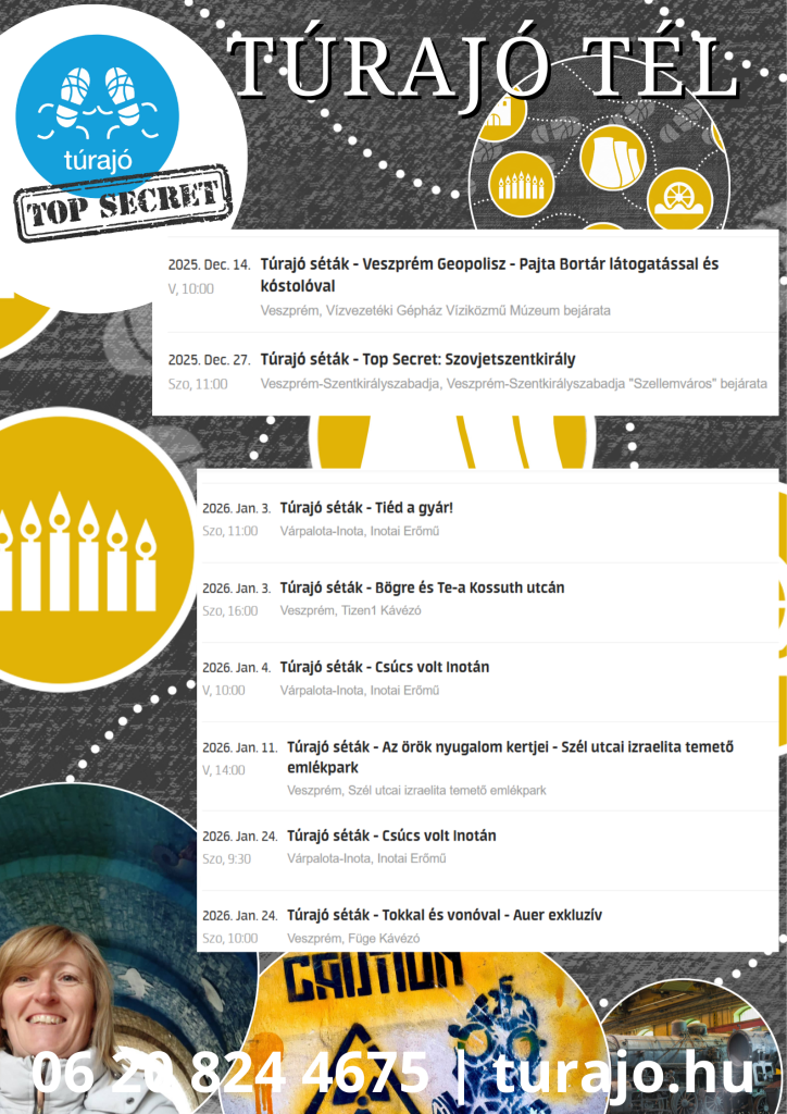 Túrajó Téli Séták – Az örök nyugalom kertjei – Szél utcai izraelita temető 2026.01.11. 14:00 Túrajó Téli Séták – Csúcs volt Inotán 2026.01.24. 09:30 Túrajó Téli Séták – Tokkal és vonóval – Auer exkluzív 2026.01.24. 10:00